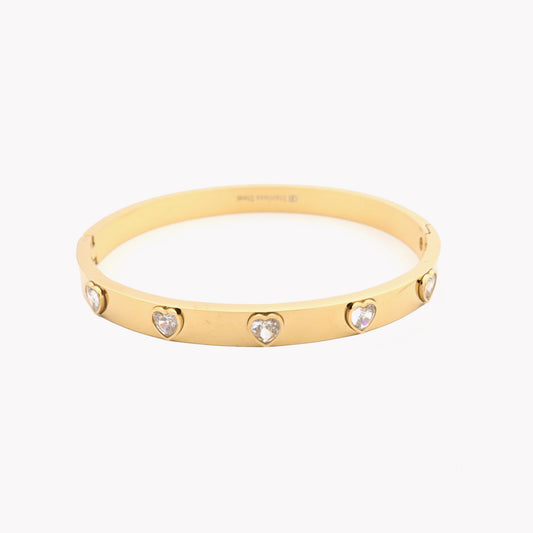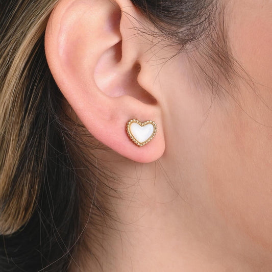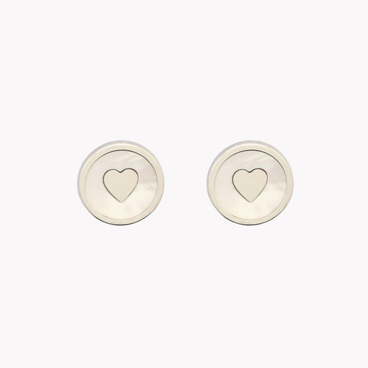 Conjunto L&L Aço - Pulseira e brincos coração textura e madrepérola