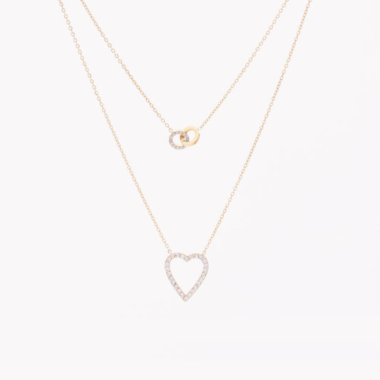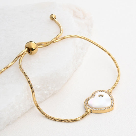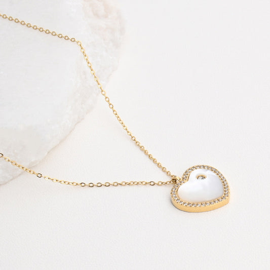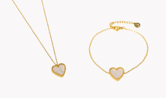 Conjunto L&L Aço -Colar e pulseira com madrepérola coração e zircônias