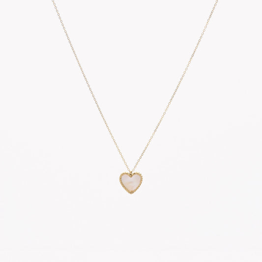 Conjunto L&L Aço - Colar e pulseira coração textura e madrepérola