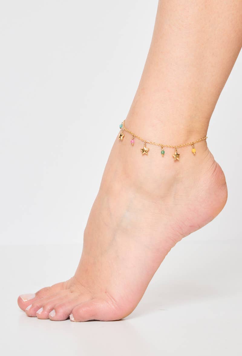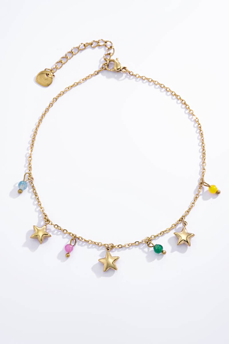 Pulseira de pé ajustável missangas coloridas e estrelas em aço inoxidável